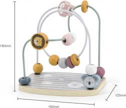 Scopri il labirinto di perline in legno che motiva lo sviluppo della motricità fine e offre una esperienza educativa per i bambini piccoli. Questo giocattolo di qualità è realizzato in legno naturale e utilizza coloranti sicuri, garantendo sicurezza e aspetto estetico. Con perline colorate e forme di animali infilate su circuiti metallici contorti, i bambini rafforzano la loro coordinazione e la motricità fine.