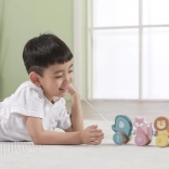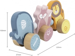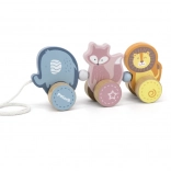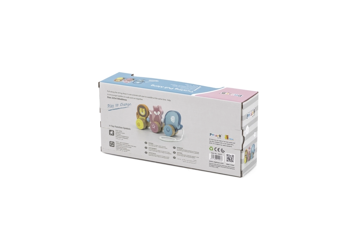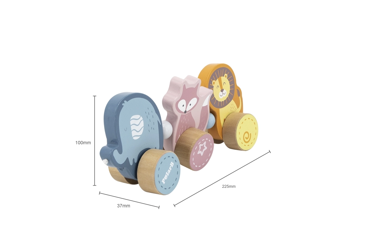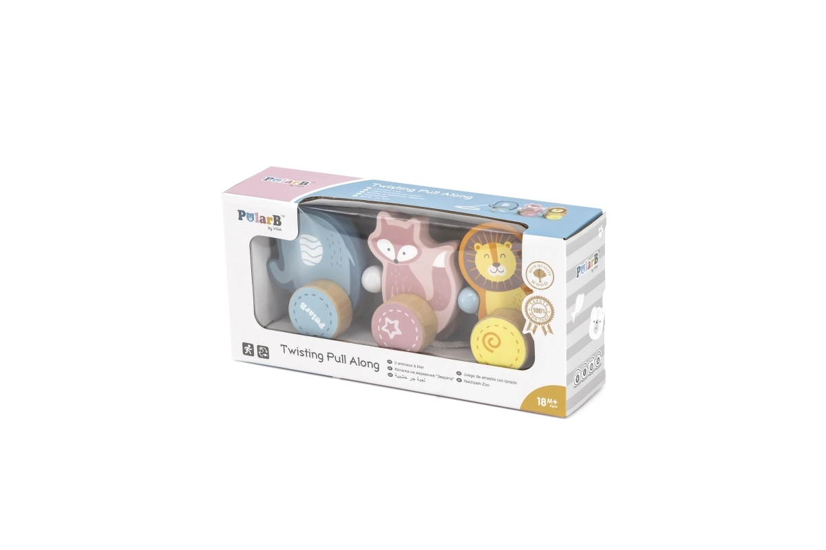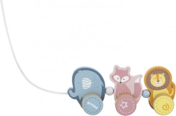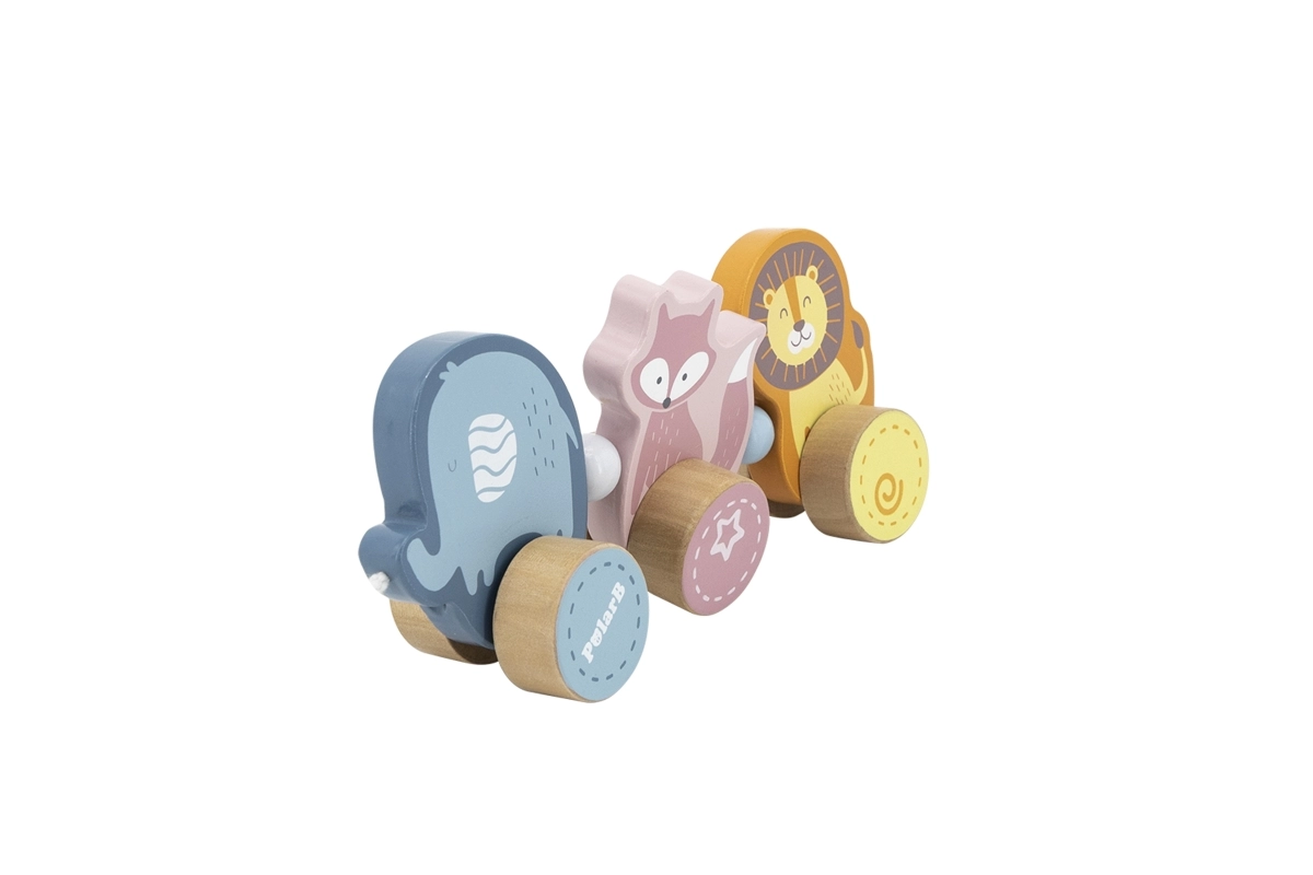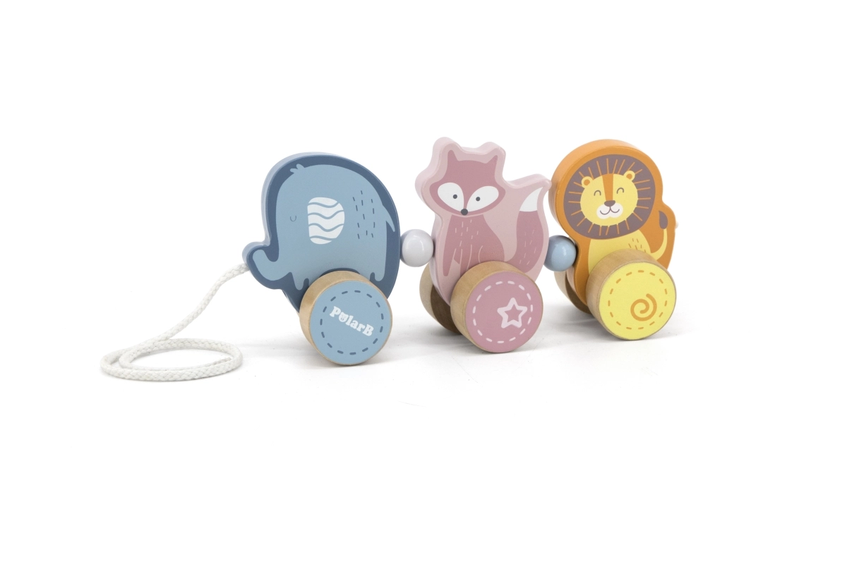 Questo gioco da traino in legno di alta qualità, nelle delicate tonalità pastello, è progettato per i più piccoli che imparano a camminare e a scoprire il mondo. Tre adorabili animaletti – elefante, volpe e leone – sono collegati tra loro e scorrono facilmente su ruote di legno. Grazie alla robusta cordicella da traino, i giocattoli si guidano con facilità, motivano i bambini al movimento e sviluppano naturalmente equilibrio e coordinazione.