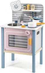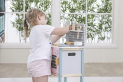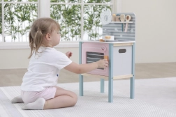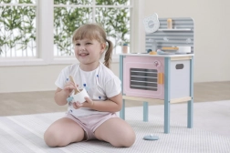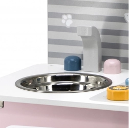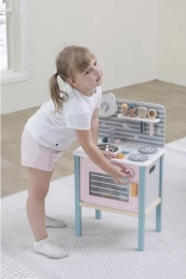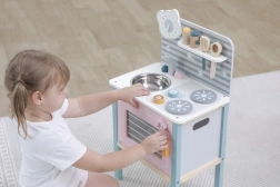 La cucina è progettata per un gioco sicuro per bambini a partire dai tre anni, supportando lo sviluppo della motricità fine e l'arte dell'imitazione.