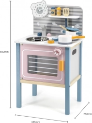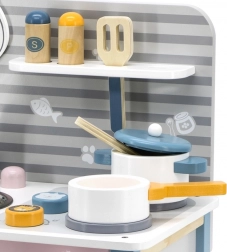 Realizzata con un design di alta qualità, la cucina è dotata di fornello, forno e lavandino, creando lo spazio perfetto per il gioco immaginativo. Elementi come i ganci sospesi e le mensole per gli utensili da cucina aggiungono autenticità al gioco.