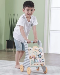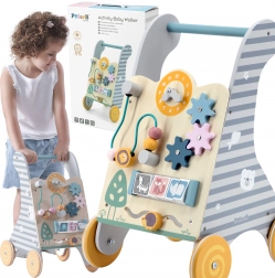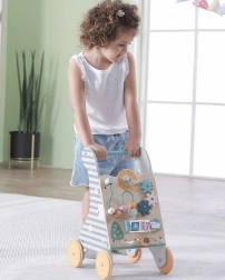 Il girello educativo in legno di Viga Toys è uno strumento eccellente per lo sviluppo delle capacità motorie e cognitive nei bambini dai 18 mesi. Il design multifunzionale combina un girello stabile e un pannello educativo interattivo che insegna ai bambini a riconoscere forme e colori. Elementi girevoli come ingranaggi, percorsi con animali e pannelli laterali mantengono l'attenzione e il divertimento del bambino.