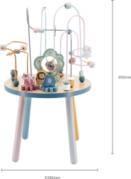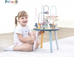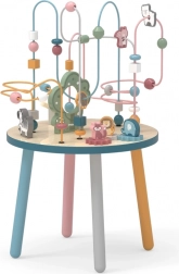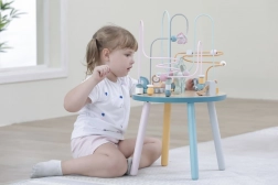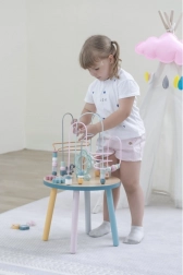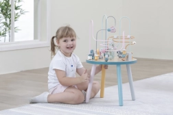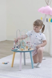 Il labirinto di perline su un robusto tavolino in legno invita i bambini alla scoperta. Forme colorate e simpatici animaletti (orsetto, volpe, riccio) motivano al movimento delle dita, alla presa precisa e alla creazione di storie proprie. Scelta ideale per uno stile montessori domestico di apprendimento attraverso il gioco, che sviluppa pazienza, concentrazione e immaginazione.