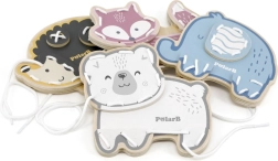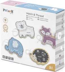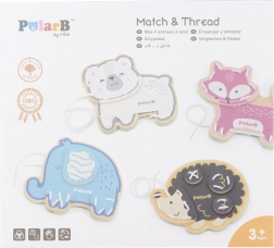 Il set PolarB Match & Thread porta ai bambini la gioia del creare e dell’imparare. Le colorate carte in legno a forma di animali hanno bordi lisci e fori sufficientemente grandi per un facile infilaggio. I bambini allenano presa, precisione e pensiero logico mentre assemblano le singole parti e praticano l’allacciatura.