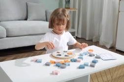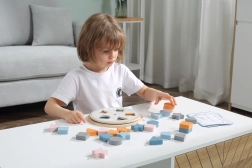 Ruotando la parte superiore della tavoletta si modificano i motivi colorati e, con le carte modello, nascono nuove attività che favoriscono concentrazione e logica.