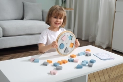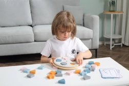 I bambini abbineranno i pezzi in legno agli incastri sulla tavoletta e, così facendo, assimileranno in modo naturale i colori e le forme di base: cerchio, quadrato, triangolo e stella.