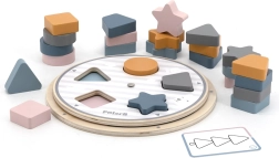 Un intelligente gioco in legno per i più piccoli che combina la classificazione di forme e colori, esercita la motricità fine e il pensiero logico. Include pezzi in legno, tavoletta girevole, carte modello e sacchetto in tessuto. Il gioco della collezione POLARB è realizzato in legno di qualità, dipinto con colori atossici in delicate tonalità pastello e al tempo stesso diverte, istruisce e sviluppa i bambini fin dalla tenera età.