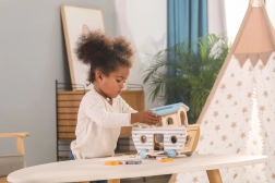 Include un ricco set di animali e forme che i bambini inseriscono nelle aperture corrispondenti. Favorisce il riconoscimento delle forme, la pazienza e la coordinazione.