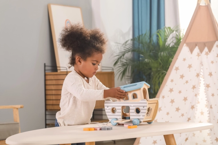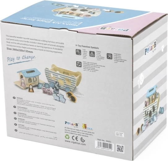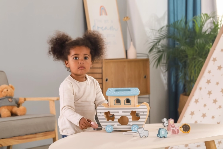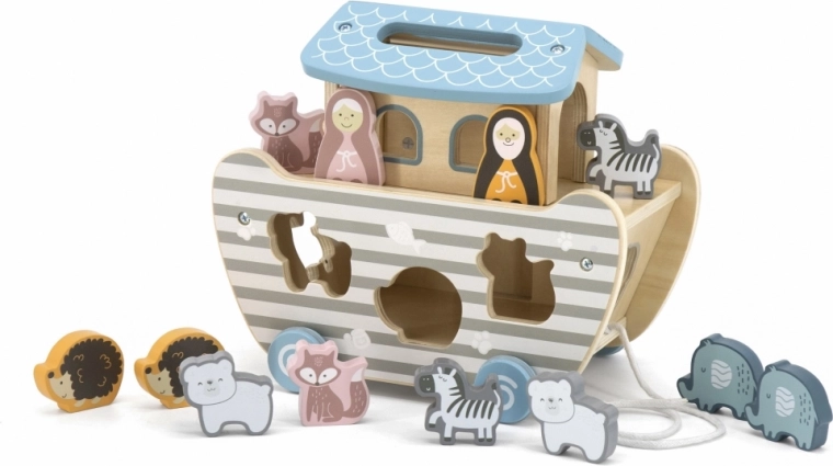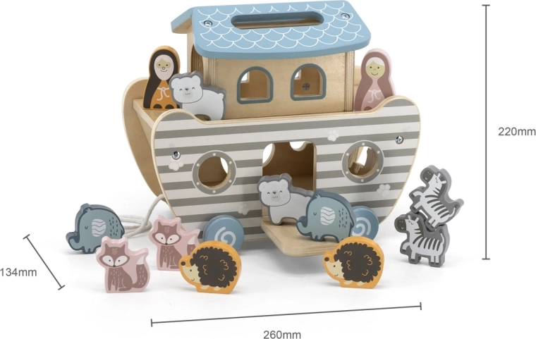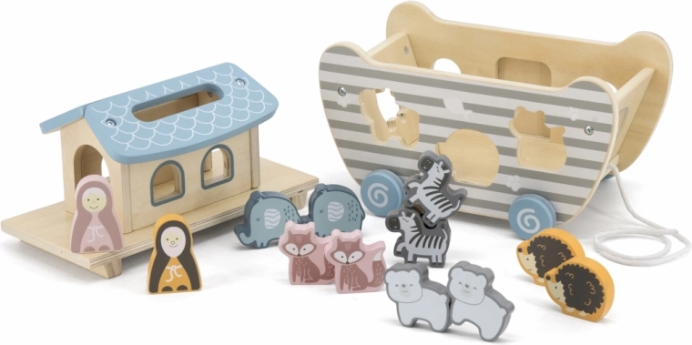 Grazie ai 14 pezzi – arca, casetta e set di animaletti – i bambini imparano a distinguere forme, colori e coppie, allenando allo stesso tempo la coordinazione occhio–mano e il pensiero logico. Il giocattolo è adatto dai 18 mesi e, grazie ai bordi arrotondati, è sicuro per i piccoli esploratori.