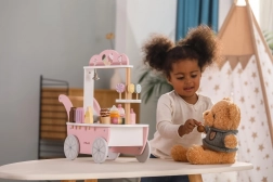 Adorabile chiosco in legno 3-in-1 di VIGA – linea POLARB – funziona come pasticceria, gelateria e piccolo negozietto. I bambini si divertiranno con il gioco di ruolo del commesso, preparando dolcetti e servendo i clienti. Inclusi ricchi accessori (lecca-lecca, gelati, coni, topping), una pratica mensolina apribile e una struttura sicura in legno di qualità con vernici atossiche in delicati colori pastello.