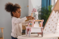 Il chiosco in legno 3-in-1 POLARB di VIGA trasforma qualsiasi stanza in un dolce regno. Grazie alla struttura mobile, alla campanella e al set variegato di dolcetti in legno, i bambini allenano creatività, comunicazione e gioco di ruolo come commesso o pasticcere. La delicata palette pastello e la lavorazione accurata invitano a giocare ancora e ancora.