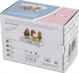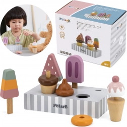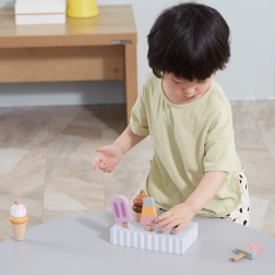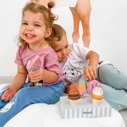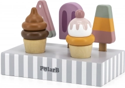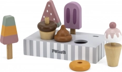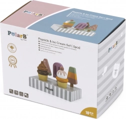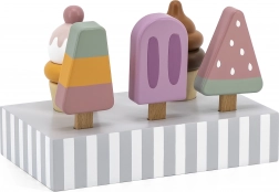 Il set di 5 ghiaccioli in legno dai colori invitanti offre ai bambini un divertimento senza fine. I ghiaccioli sono posizionati su un supporto in legno stabile, utile sia per l’esposizione che per una conservazione ordinata. Il tutto è realizzato in legno di qualità e dipinto con colori sicuri e atossici.