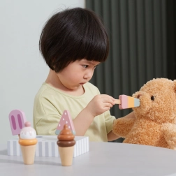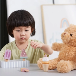 Cinque diversi ghiaccioli ispirano i bambini ai giochi di ruolo, sviluppando il vocabolario e le capacità sociali durante il divertimento condiviso.