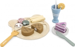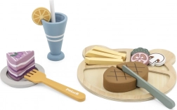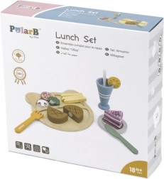 Il set pranzo in legno POLARB di VIGA è pronto per servire una delizia con stile. Sul piattino i bambini possono disporre bistecca, patatine, verdure e dessert e “accompagnare” il tutto con una bevanda con cannuccia. Gli accessori realistici invogliano a imitare gli adulti e sviluppano autonomia e vocabolario.