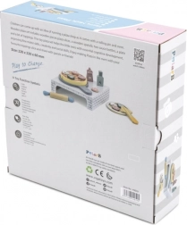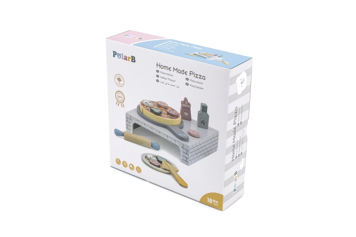Scoprite la magia della pizzeria a casa vostra con questo set da gioco da chef in legno di alta qualità. Il set include un forno per pizza, una pizza da tagliare con topping rimovibili, un matterello, un piattino e altri accessori per un gioco realistico. Favorisce la manualità fine, la creatività e i giochi di ruolo già dai 18 mesi.
