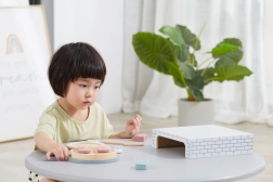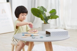 Il legno liscio dai toni pastello è piacevole al tatto e resistente all’uso quotidiano. Sicuro per bambini dai 18 mesi.