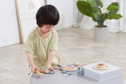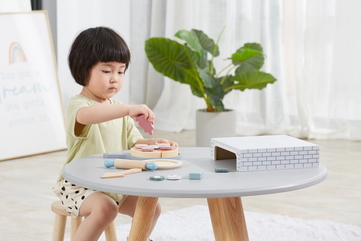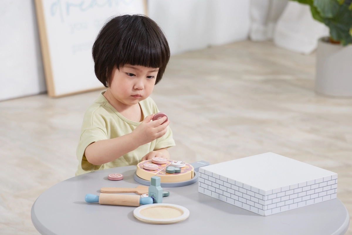 Questo set in legno per la pizza fatta in casa trasforma la cameretta in una pizzeria accogliente. I bambini possono stendere l’impasto, comporre gli ingredienti, cuocere nel forno e poi servire nel piattino – proprio come nella realtà. I topping rimovibili e i pezzi da taglio favoriscono la coordinazione occhio–mano e lo sviluppo della fantasia.