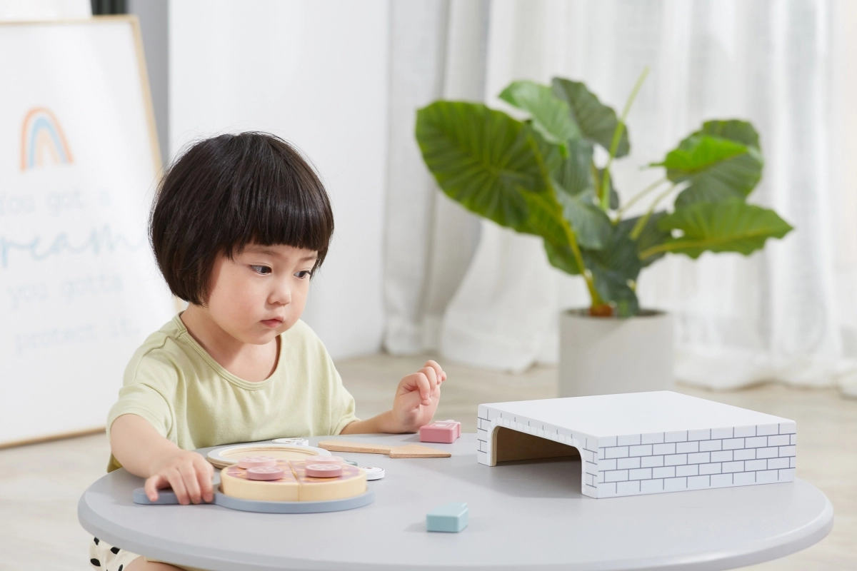 Componete gli ingredienti, tagliate la pizza in porzioni e allenate la motricità fine e la coordinazione occhio–mano durante un gioco divertente.