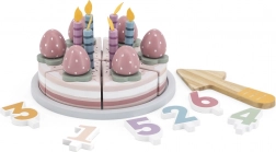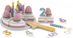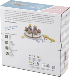 Deliziosa torta in legno da tagliare del marchio VIGA della collezione POLARB, che offre ore di gioco creativo e apprendimento attraverso il gioco. È composta da 6 fette di torta, candeline rimovibili, fragoline, piattino, paletta in legno e cubetti numerici per i primi conti. Realizzata in legno di qualità e dipinta con colori atossici – una scelta sicura per i piccoli chef.