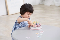 I colorati cubetti numerici e le candeline favoriscono il riconoscimento dei numeri, il conteggio delle porzioni e i primi giochi matematici.