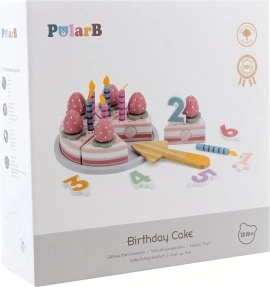 Regala ai bambini la gioia della festa ogni giorno. La torta di compleanno in legno POLARB può essere tagliata in 6 porzioni, decorata con candeline e fragoline e servita con la paletta inclusa. Le colorate cifre incoraggiano i bambini a riconoscere i numeri e a fare semplici conti, mentre il gioco realistico della festa sviluppa le abilità sociali.