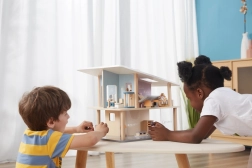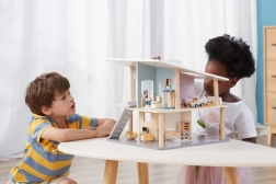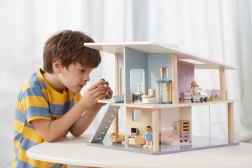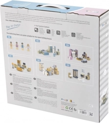 Gli interni possono essere completati con set tematici di mobili (cucina, soggiorno, camera da letto, stanza dei bambini e bagno), che ampliano le possibilità di gioco e favoriscono l’apprendimento sul funzionamento della casa.