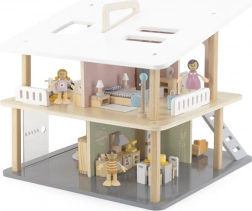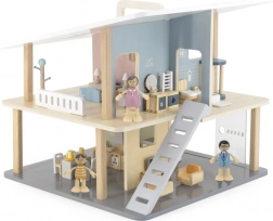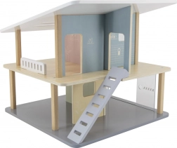 Questa moderna casetta in legno offre ai bambini uno spazio per il gioco libero e lo sviluppo della fantasia. La struttura aperta consente un facile accesso a tutte le stanze, i due piani e la terrazza invitano a creare storie proprie. Grazie al design portatile si sposta e si ripone con facilità.