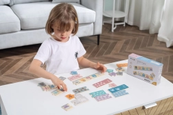 Favorisce la coordinazione mano–occhio, il pensiero logico e l’arricchimento del vocabolario nel nominare numeri, colori e animali.