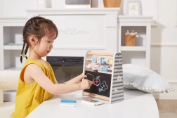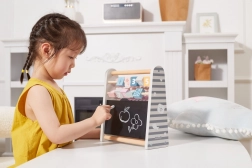 Include una piccola lavagna e gesso antipolvere per scrivere numeri, primi esercizi e disegnare – ideale per sviluppare la creatività.