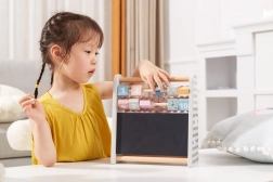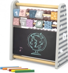 Scopri un gioco intelligente per le prime matematica: abaco in legno 3 in 1 con perline colorate, cubetti girevoli con numeri e una piccola lavagnetta con gesso. Sviluppa calcolo, riconoscimento dei numeri e creatività nel disegno. Formato compatto da tavolo, struttura in legno stabile e attraenti colori pastello lo rendono la scelta ideale per bambini dai 3 anni in su.