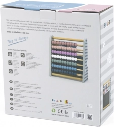 Questo abaco multifunzionale in legno 3 in 1 unisce apprendimento e gioco in un unico strumento. Con le perline colorate i bambini esercitano il calcolo, con i cubetti girevoli con numeri imparano a riconoscere le cifre e le relazioni semplici e sulla lavagnetta con gesso possono scrivere o disegnare i loro primi esercizi e immagini.
