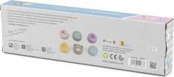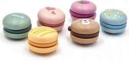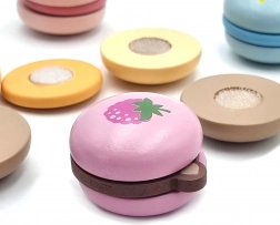 Questo grazioso set comprende sei macaron in legno dai colori vivaci con motivi originali. Le parti si collegano tramite chiusura a strappo, così i bambini possono “mischiare” facilmente nuovi gusti e fantasie. Un accessorio ideale per cucina giocattolo, negozietto e pasticceria dei bambini.