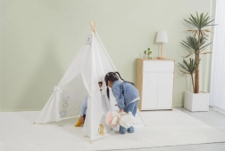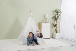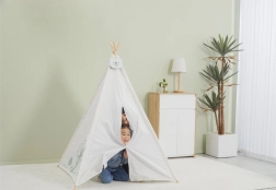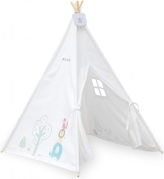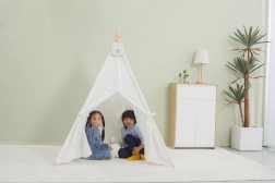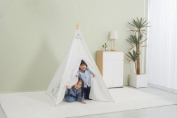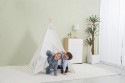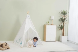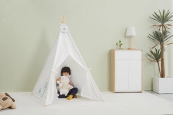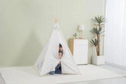 La tenda teepee POLARB trasforma qualsiasi stanza in un luogo magico pieno di fantasia. Il design minimalista bianco con simpatici motivi di animali si inserisce negli interni moderni e crea per i bambini uno spazio tranquillo e stimolante. La solida struttura con aste in legno assicura stabilità durante il gioco e si monta e smonta con facilità.