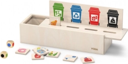 Questo gioco educativo VIGA è ideale per i bambini che imparano le basi della raccolta differenziata. È fornito con una scatola in legno, dotata di aperture per inserire le tessere, e con una tabella con diversi cestini dei rifiuti. Include anche 50 tessere in legno con immagini dei rifiuti e colori corrispondenti alle categorie di riciclaggio.