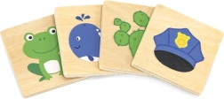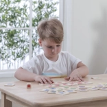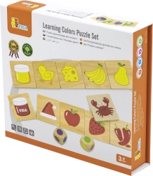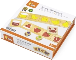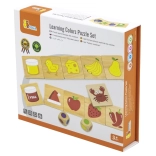 Gioco educativo in legno grazie al quale i bambini imparano a distinguere i colori e ad abbinarli correttamente alle immagini. Oltre a conoscere i colori, acquisiscono consapevolezza di oggetti, piante o animali associati a tali colori, rafforzando la loro conoscenza del mondo che li circonda.