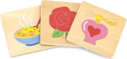 VIGA gioco educativo puzzle in legno offre un modo ideale per permettere ai bambini di sviluppare il pensiero e la coordinazione. Il compito consiste nell’abbinare gli oggetti ai sensi selezionati, includendo vari elementi della vita quotidiana.
