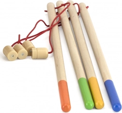 Il set include quattro canne in legno che supportano la coordinazione mano-occhio e così sviluppano divertendo la motricità fine dei bambini.