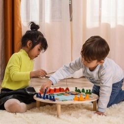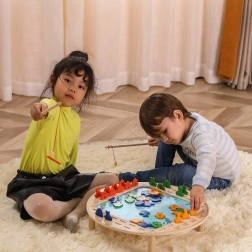 Gioco di pesca in legno è ideale per i bambini che vogliono sviluppare le loro capacità attraverso il gioco e la competizione. Questo gioco educativo offre divertimento e allo stesso tempo supporta lo sviluppo della motricità fine e delle abilità di coordinazione.