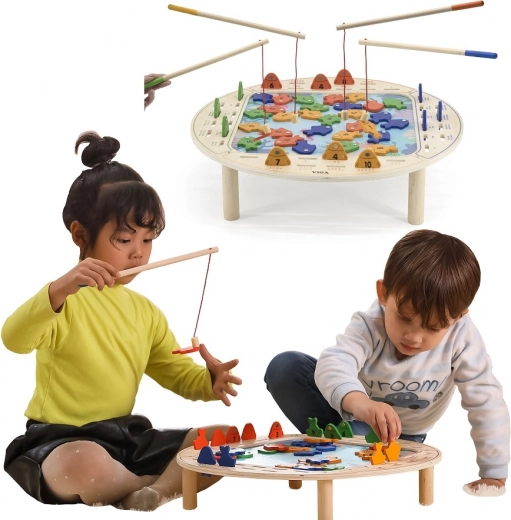 Il gioco di pesca in legno offre la possibilità di un gioco divertente ed educativo. Questo attraente tavolo da gioco include: