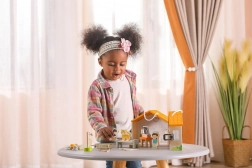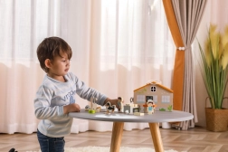 Il giocattolo è realizzato in legno di faggio e dipinto con vernici atossiche. Il lucchetto in metallo previene la perdita delle figurine, garantendo sicurezza e organizzazione durante il gioco.
