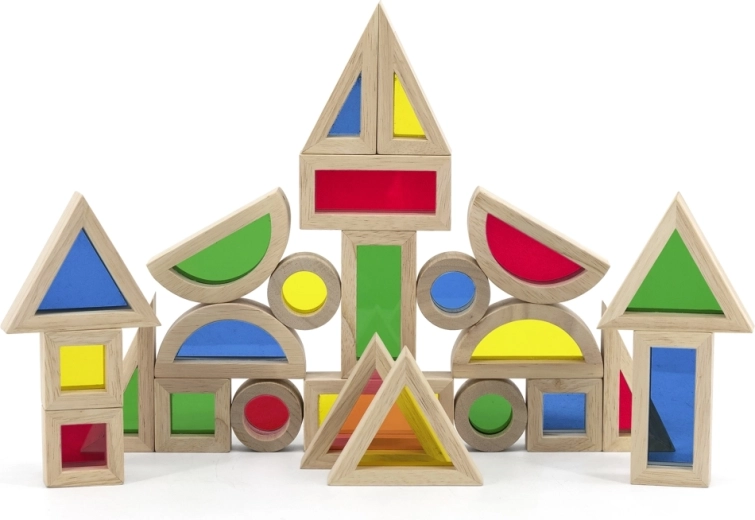 I blocchi sono disponibili in diverse forme e colori che favoriscono il riconoscimento di colori e forme e la percezione visiva.