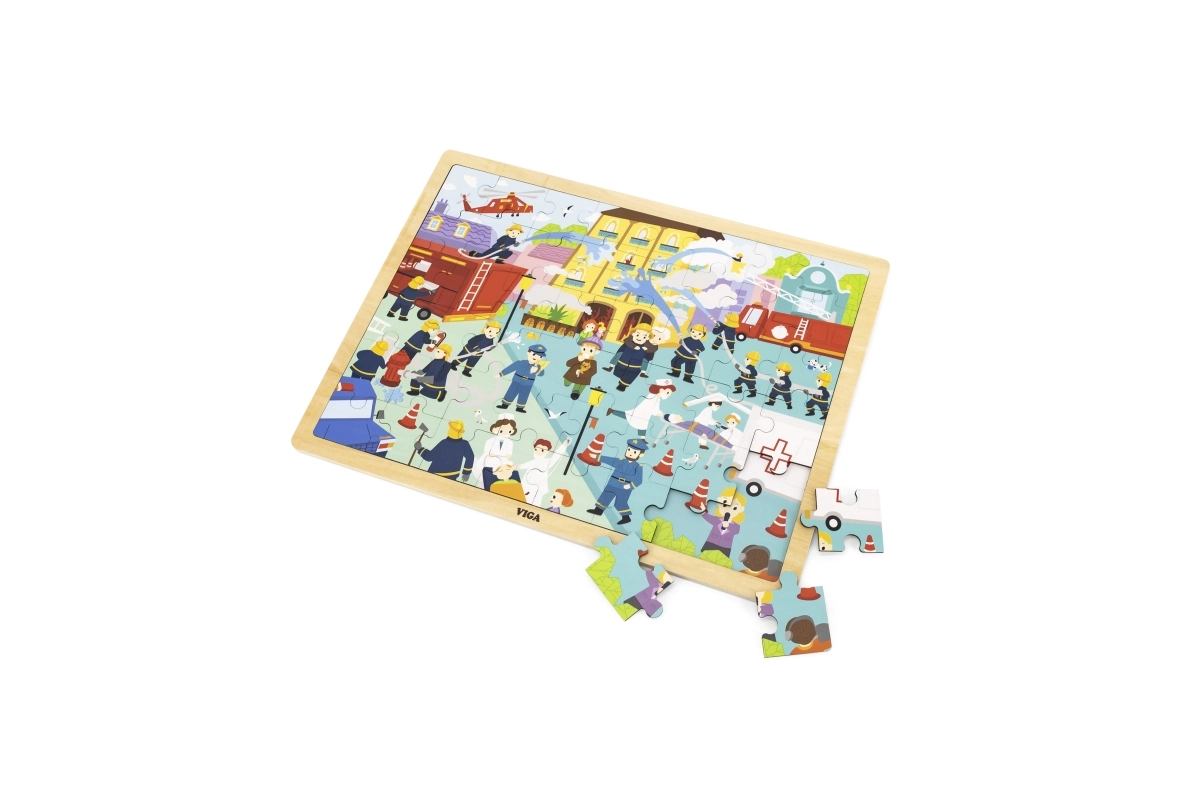 Scoprite divertenti puzzle in legno con tema pompieri, che presentano ai bambini il mondo dei soccorritori in modo giocoso. Grazie a 48 pezzi robusti e a una pratica cornice in legno, il puzzle favorisce motricità fine, pensiero logico e pazienza. Ideale per bambini a partire da 24 mesi.