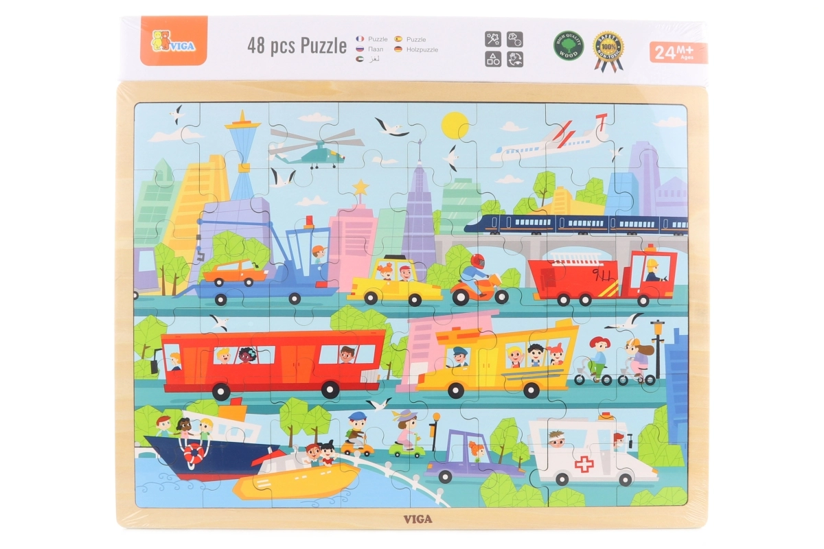 Questo puzzle in legno di qualità, con una scenografia variopinta di città e mezzi di trasporto, entusiasmerà i piccoli esploratori. Grazie ai 48 pezzi e al telaio robusto, i bambini allenano concentrazione, coordinazione occhio–mano e pazienza. Colori vivaci e illustrazioni chiare invogliano a ricomporlo più e più volte.