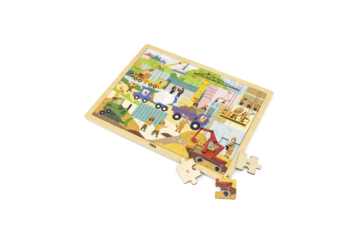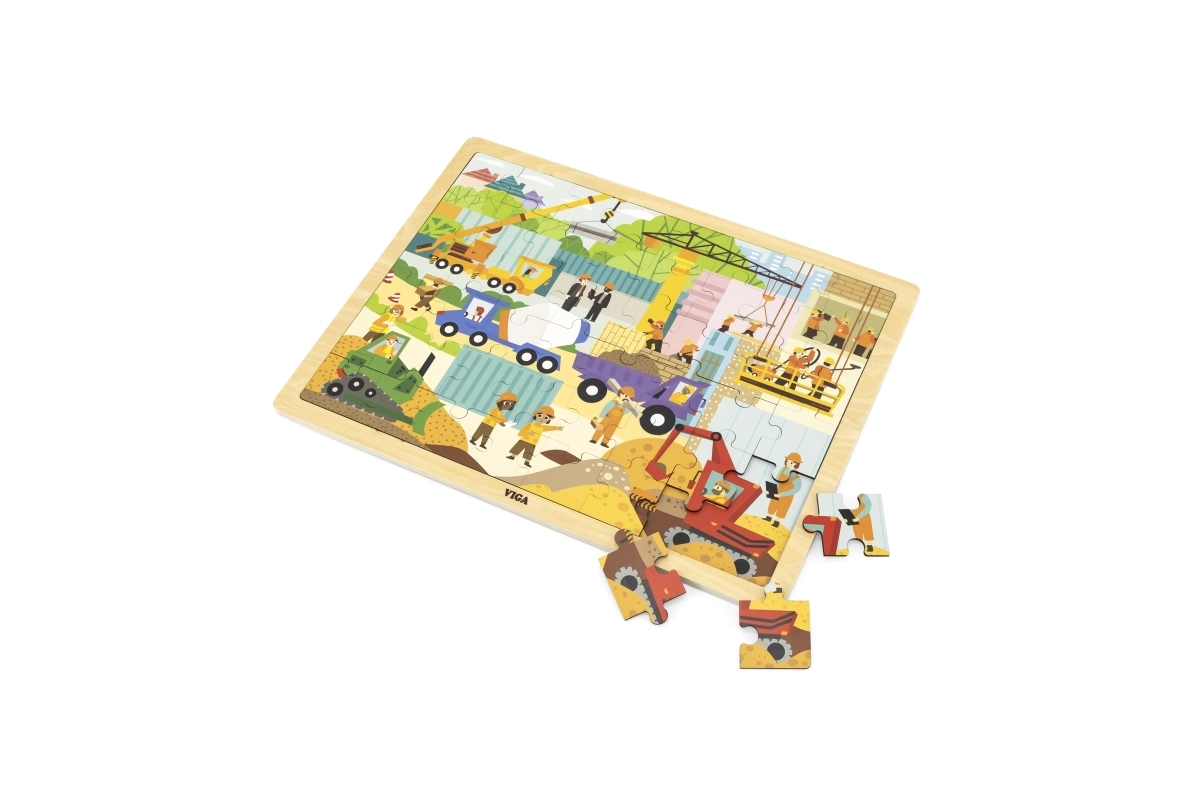 Questo puzzle in legno di qualità con tema cantiere è la scelta ideale per i primi puzzle di dimensioni maggiori. Grazie ai 48 pezzi tagliati con precisione, i bambini esercitano la coordinazione occhio–mano e imparano a riconoscere forme e colori. La solida base in legno mantiene l’immagine compatta e facilita la manipolazione.