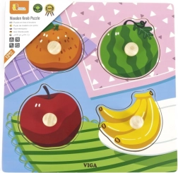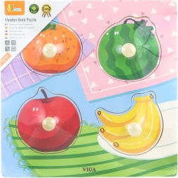 Presentiamo il puzzle in legno con frutta del marchio Viga, che non solo serve come tradizionale rompicapo, ma aiuta anche il tuo bambino a sviluppare fine capacità motorie, riconoscimento delle forme, e abilità di coordinazione. Il puzzle include 4 pezzi a forma di frutta con semplici maniglie per una facile presa.
