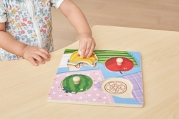 Il puzzle include pezzi con maniglie per una facile manipolazione anche da parte dei bambini più piccoli.