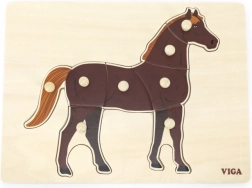 Il puzzle Montessori con il realistico soggetto del cavallo incoraggia i bambini a esplorare in autonomia e a concentrarsi. Grazie ai pratici pomelli afferrano facilmente i singoli pezzi, imparano a riconoscere le forme e allenano la precisione dei movimenti. Il contrasto tra il legno naturale e il cavallino marrone rende i contorni ben leggibili e invita al gioco.
