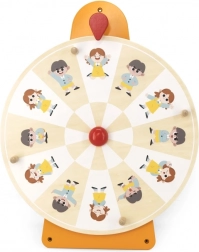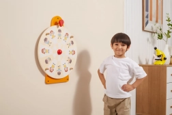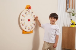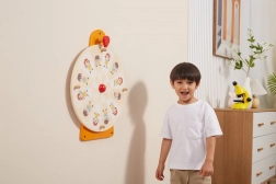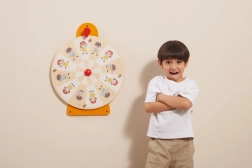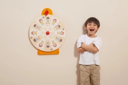 Questo gioco da parete in legno sviluppa capacità di osservazione, prontezza di riflessi e coordinazione occhio–mano. I bambini fanno girare la ruota e la freccia indica l’espressione o l’azione da imitare: in modo naturale allenano l’espressione delle emozioni, il pensiero logico e la motricità fine.