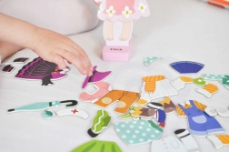 Questo gioco di vestizione favorisce lo sviluppo della fantasia e del pensiero autonomo. Grazie alla facile manipolazione, è ideale sia per giocare a casa che in viaggio.