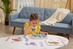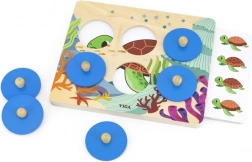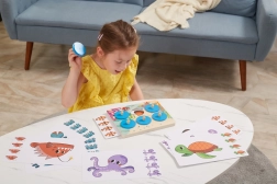 Scoprite i segreti del mare con un gioco educativo in legno che diverte e allo stesso tempo sviluppa. Inserendo le carte tematiche nella tavoletta in legno e rivelando gradualmente i gettoni rotondi con pomello, i bambini allenano concentrazione, memoria e capacità di distinguere i dettagli visivi. Il gioco è ideale sia da soli che in famiglia.