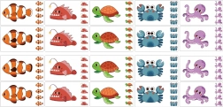 Il set comprende 10 cartoncini stampati su entrambi i lati – in totale 20 schemi di gioco con animali marini e altri temi.